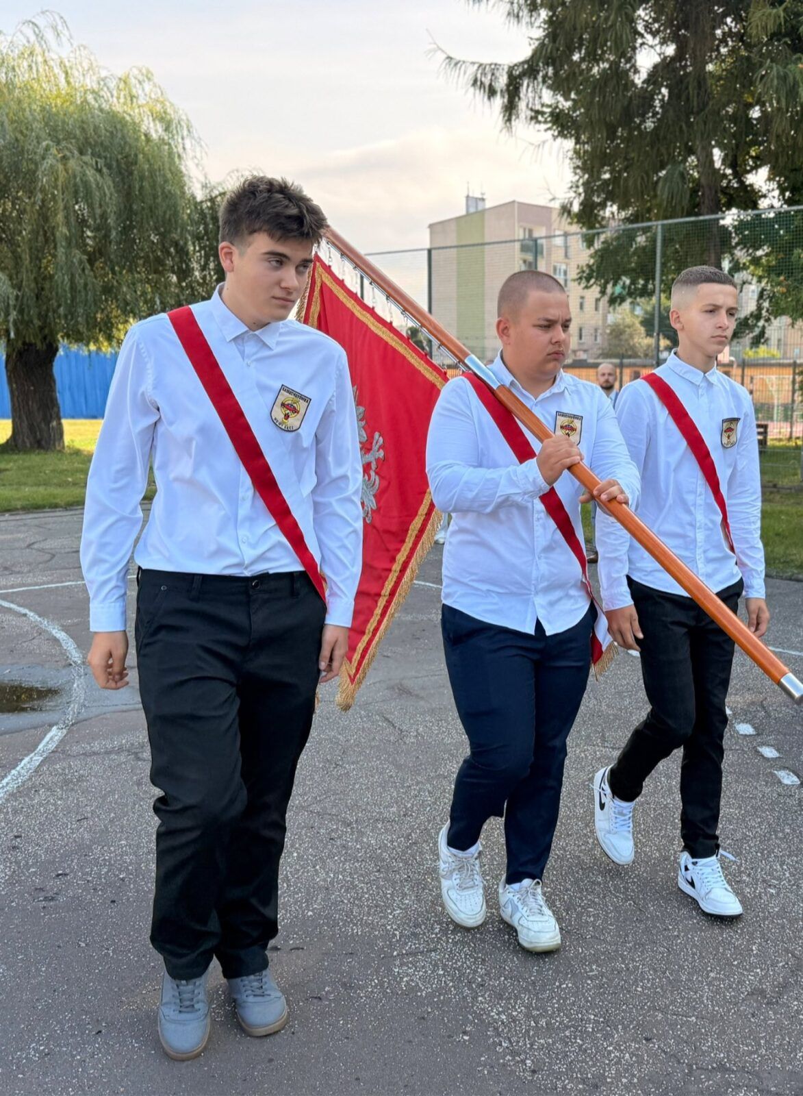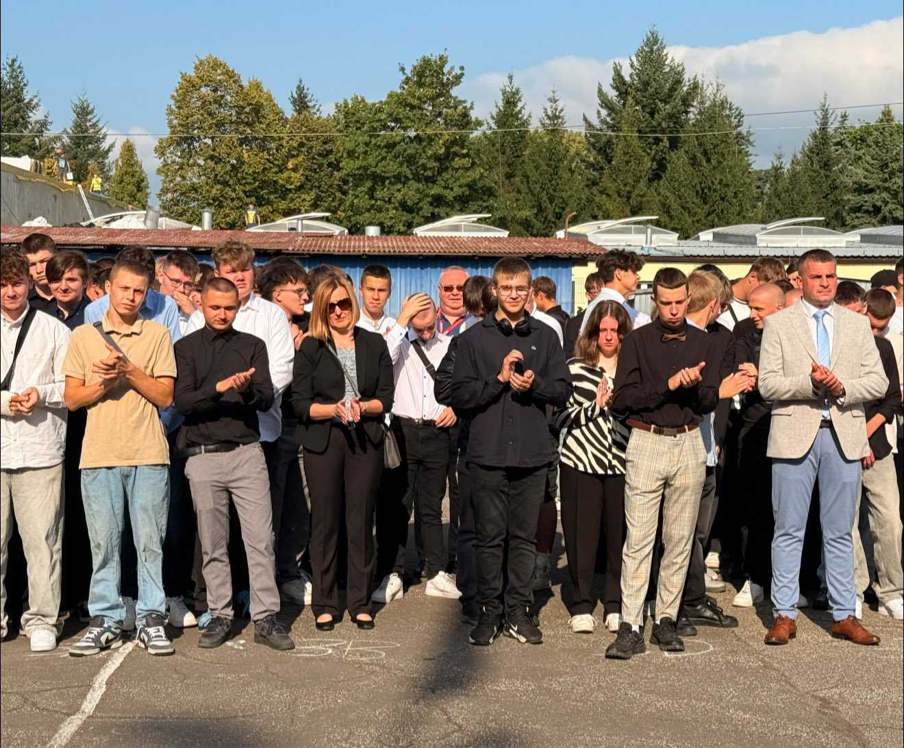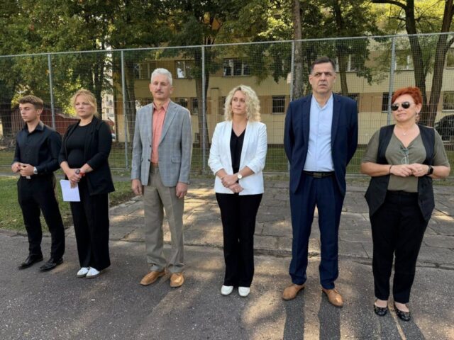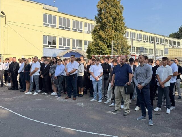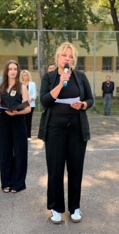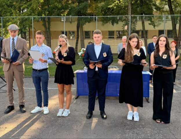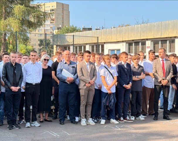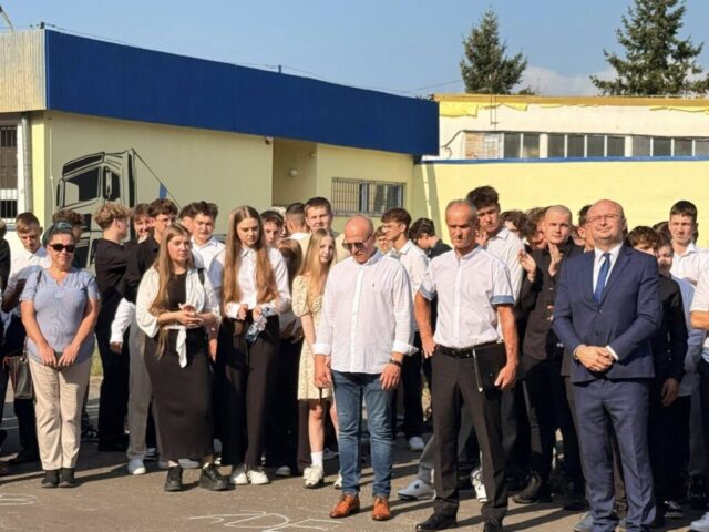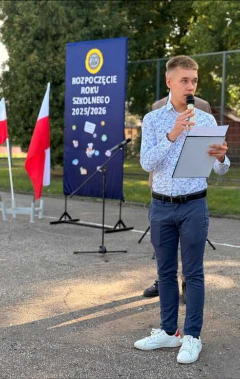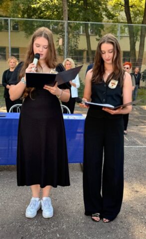 Rozpoczęcie roku szkolnego 2025/2026. Pani Dyrektor Ewa Zielińska przywitała wszystkich, w tym uczniów pierwszych klas, życząc udanego roku w murach Samochodówki.