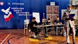 Z okazji 11 listopada w sali gimnastyczne odbyło się wyjątkowe przedstawienie. Uczniowie klasy 2 M Technikum, jako bohaterowie szkolnej biblioteki, rozmawiali o marszałku Józefie Piłsudskim i najważniejszych wydarzeniach związanych z odzyskaniem przez Polskę niepodległości.