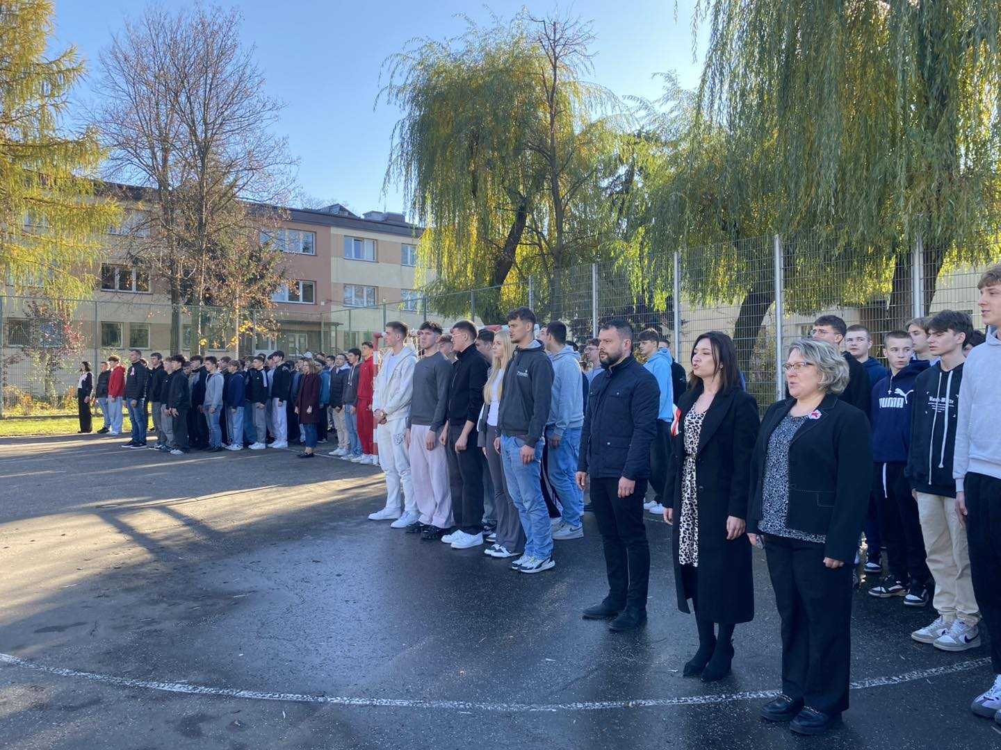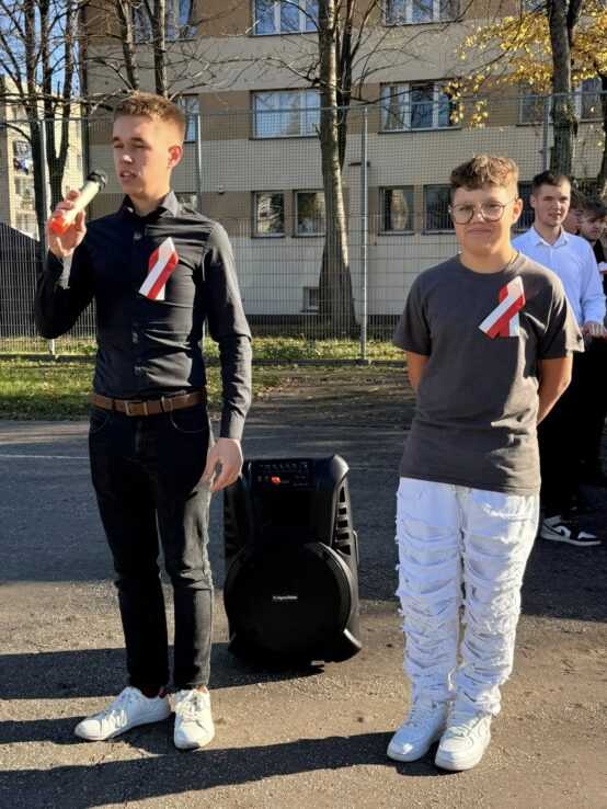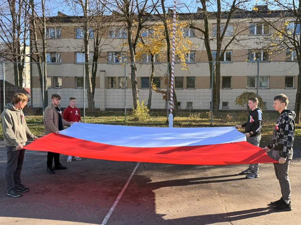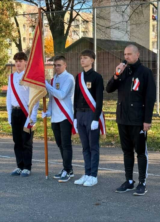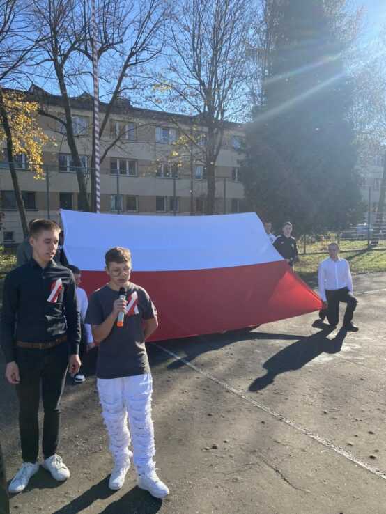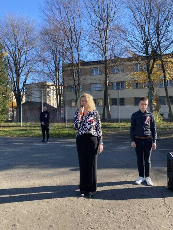Uroczysty śpiew hymnu był nie tylko wyrazem patriotyzmu i pamięci o bohaterach, którzy walczyli o wolność Ojczyzny, ale także symbolem jedności uczniów i nauczycieli w duchu wspólnych wartości. Przypomniała nam o tym pani dyrektor Ewa Zielińska podczas krótkiej okolicznościowej przemowy.