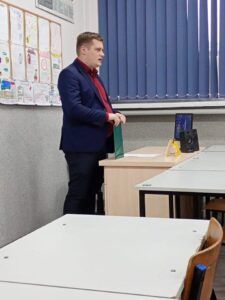 W poniedziałek 17.11 gościliśmy Pana Rafała Gajewskiego, redaktora naczelnego portalu internetowego „Sądeczanin.info” Nasi uczniowie mogli wysłuchać prelekcji na temat pracy dziennikarza, sposobów pozyskiwania informacji oraz o innych ciekawych wydarzeniach z życia redakcji. Dziękujemy za bardzo ciekawe zajęcia. Wszystkie te wydarzenia są elementem projektu „Zanim klikniesz – pomyśl”, sfinansowanego ze środków Ministerstwa Edukacji Narodowej w ramach programu „Młodzi obywatele” na 2025 r. Kolejnym wydarzeniem będzie nakręcenie przez wolontariuszy „Lawety pomocy” filmików na temat dezinformacji. Niedługo na pewno pochwalimy się efektami naszych działań.