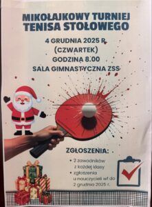 📝 W turnieju może wziąć udział 2 zawodników z jednej klasy. Zapisy do 2 grudnia.