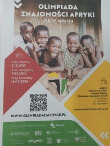 XXIV Olimpiada Znajomości Afryki. W dniu 02.12.2025 odbył się I etap Olimpiady Znajomości Afryki .W Olimpiadzie brało udział 10 uczniów z klas 4D, 4E. Organizatorem Olimpiady jest Polskie Towarzystwo Afrykanistyczne, oraz Uniwersytet Jagielloński w Krakowie .Dziękujemy za udział i życzymy dalszych sukcesów.
