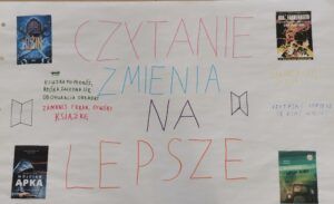 Każdy oddział szkoły branżowej przygotował plakat promujący czytelnictwo.