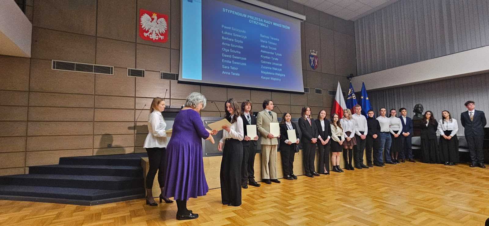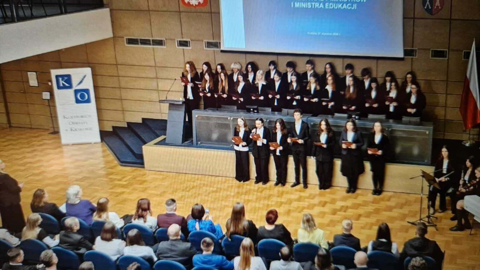 Stypendystka Prezesa Rady Ministrów przez Anna Lisowska · Opublikowano 14 lutego 2026 · Zaktualizowano 15 lutego 2026 27.01.2026 w Auli Uniwersytetu Rolniczego w Krakowie, Małopolski Kurator Oświaty uhonorował Stypendystów Prezesa Rady Ministrów.Naszą Samochodówkę reprezentowała Olga Ściurka z klasy 2E. Jesteśmy bardzo dumni! Gratulacje Olga !!! Udostępnij