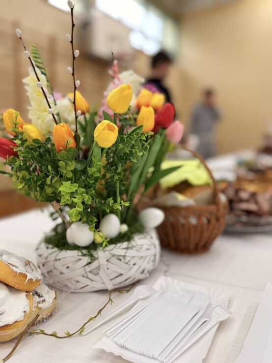 Dzisiejsze śniadanie wielkanocne było wyjątkowym wydarzeniem, które połączyło całą społeczność naszej szkoły – nauczycieli, uczniów oraz emerytowanych pedagogów.